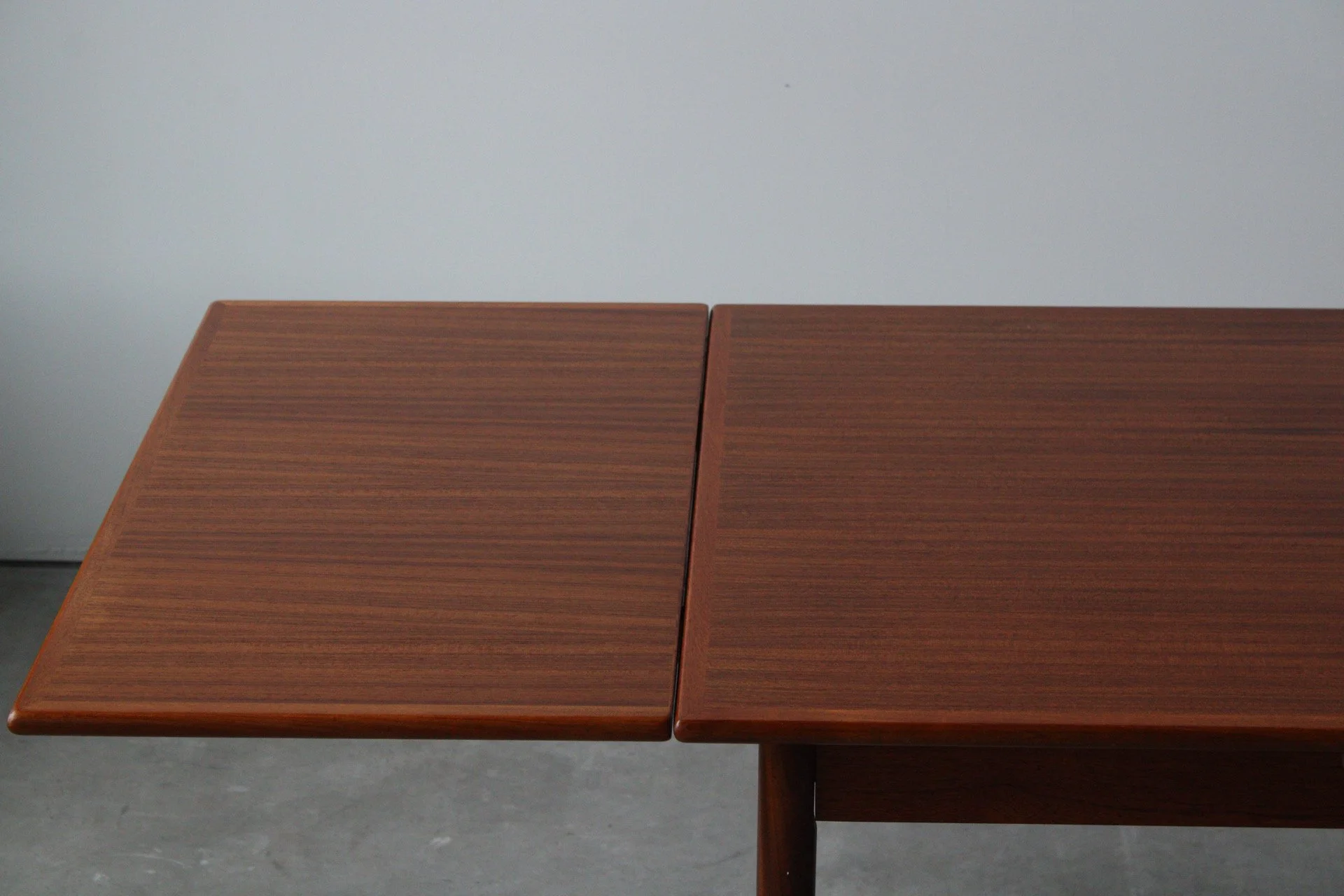 This beautifully finished mid-century teak extending dining table showcases rich, dark contrasting grain and a silky smooth surface that feels as good as it looks. Thoughtfully designed, it extends effortlessly—making it a functional, versatile piece for gathering, hosting, and everyday living. We love how compact, lightweight, and easy to move it is, offering flexibility without compromising style. An exceptional example of mid-century design, perfect for the growing family or the forever hostess who values both beauty and practicality.
