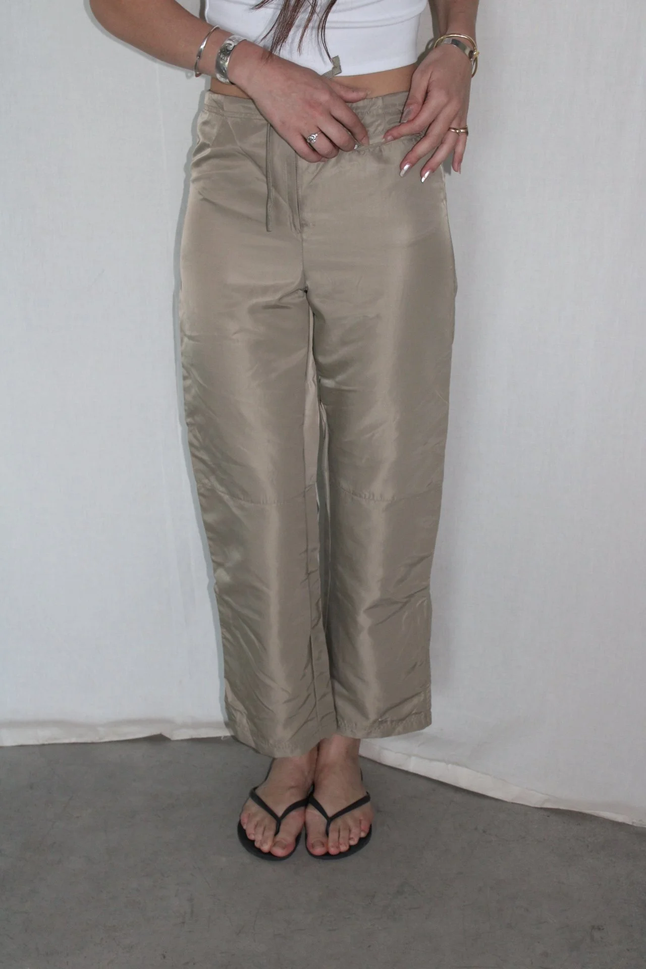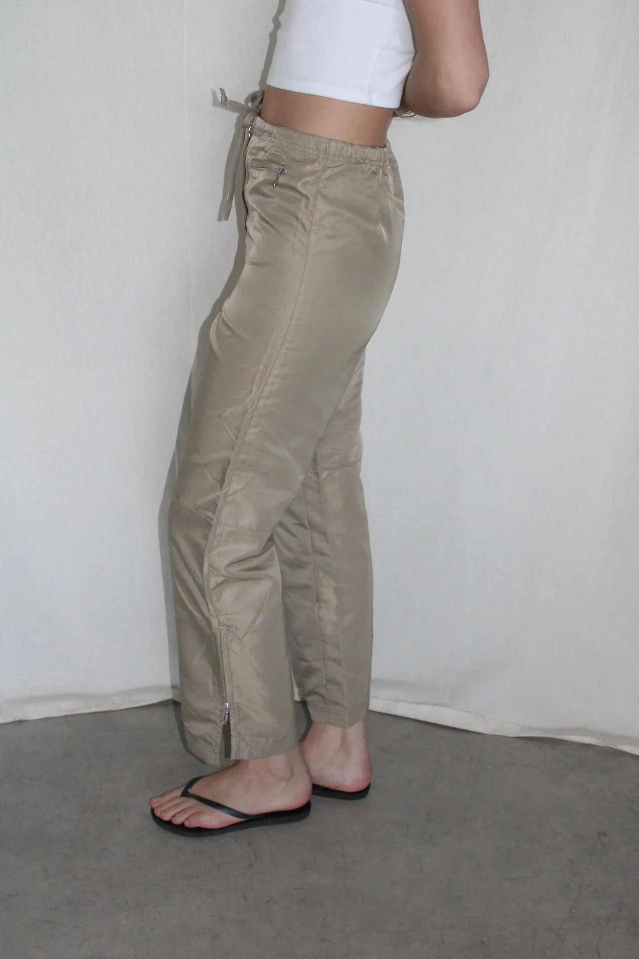 Vintage neutral trackies. Perfect colour and fit. Had adjustable drawstring, and fun zipper details. Perfect for casual wear. Mildly cropped.