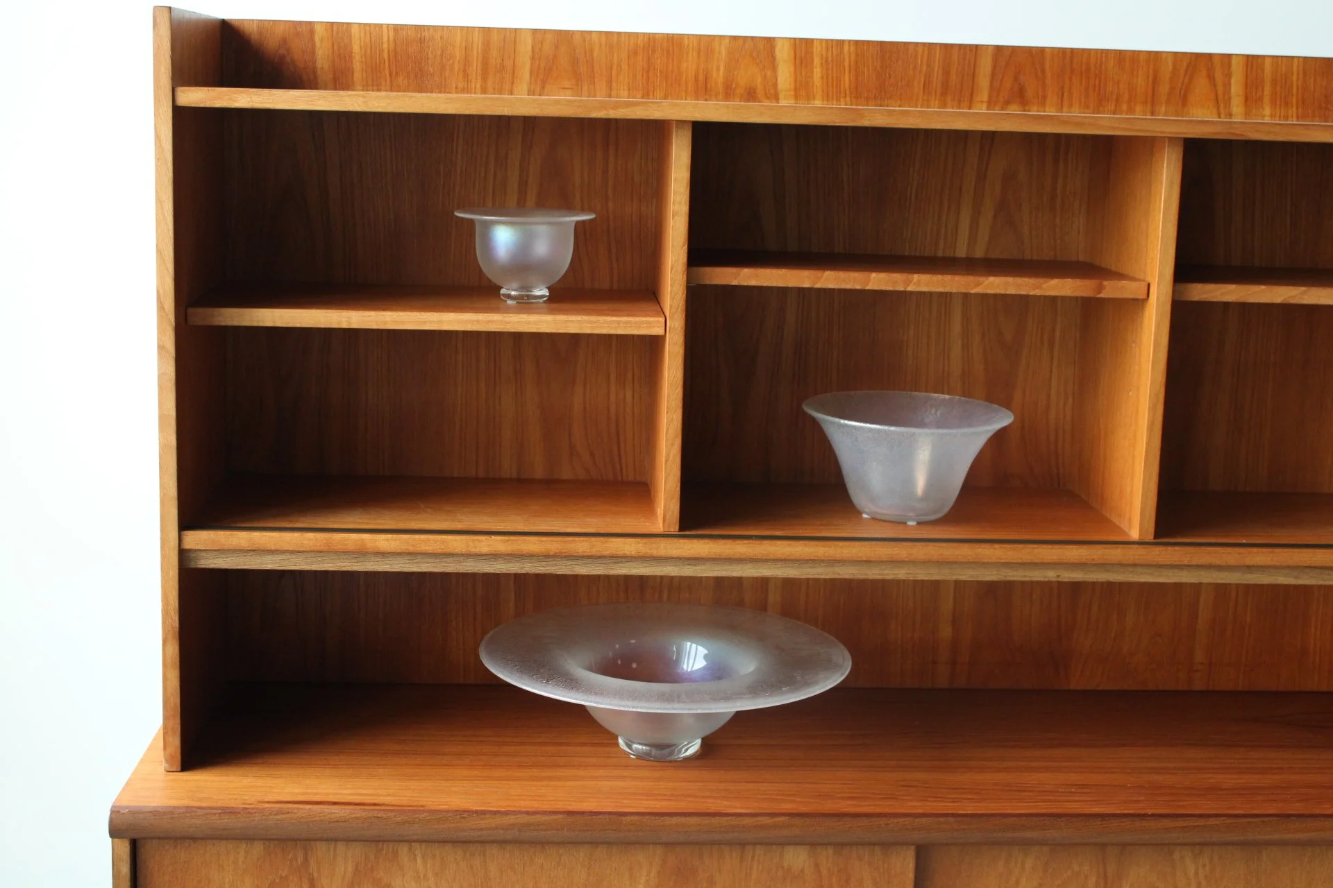 A stunning iridescent and lightly textured glass blown oversized vessel. Great form!